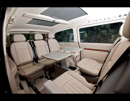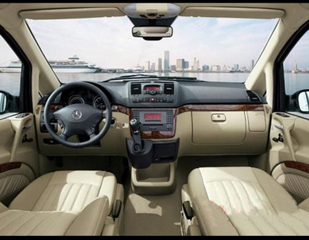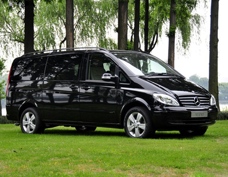 The Mercedes Viano minivan provides premier comfort and luxury for a group of up to 6 passengers. A great alternative to using multiple luxury sedans for a group of 4 to 6 passengers with foldable conference table inside.