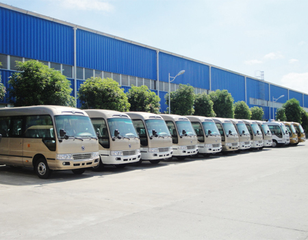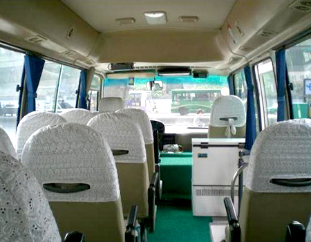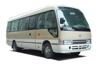 The Toyota Coaster minibus provides good room and comfort for up to 20 passengers, applied to various scenes